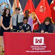The Army Corps of Engineers and the Department of Defense Education Activity recently announced a new partnership with Ashurst Elementary School on Marine Corps Base Quantico to advance science, technology, engineering and math (STEM) education in schools. Lt. Gen. Thomas P. Bostick, commander, U.S. Army Corps of Engineers (USACE) and Marilee Fitzgerland, director, Department of Defense Education Activity (DoDEA) visited with students this past week to sign the agreement.