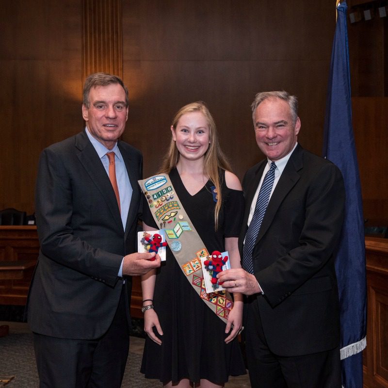 This summer, she presented Sens. Tim Kaine and Mark Warner with their own superhero critters at a Gold/Eagle Scout award reception, where she thanked them for supporting children’s cancer research funding and advocated for more funding.
