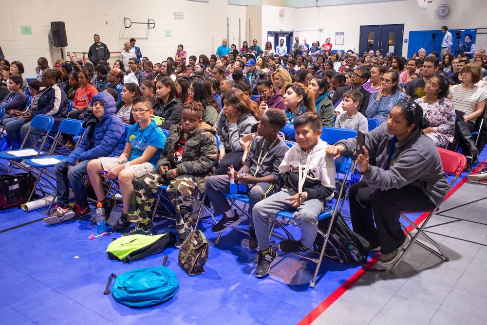 Students fill the gym to hear from STEM leaders, educators, astronauts and fellow students.