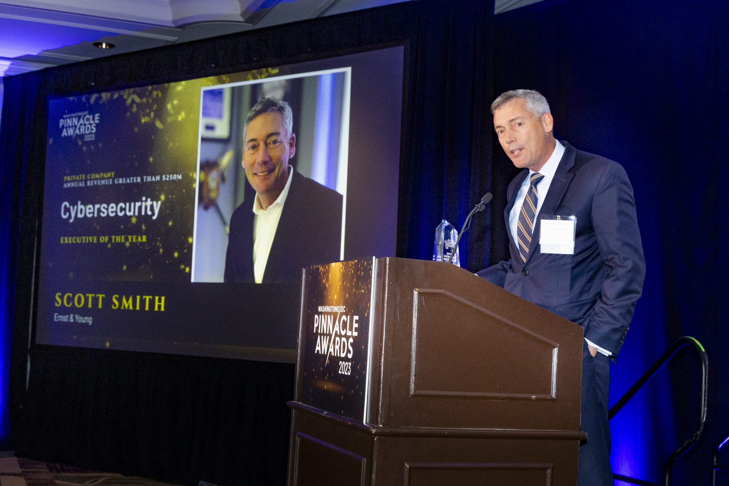 Scott Smith, U.S. government and public sector cybersecurity partner/principal at Ernst & Young, has won WashingtonExec’s 2023 Pinnacle Award for Private Company (annual revenue greater than $250 million) Cybersecurity Executive of the Year.